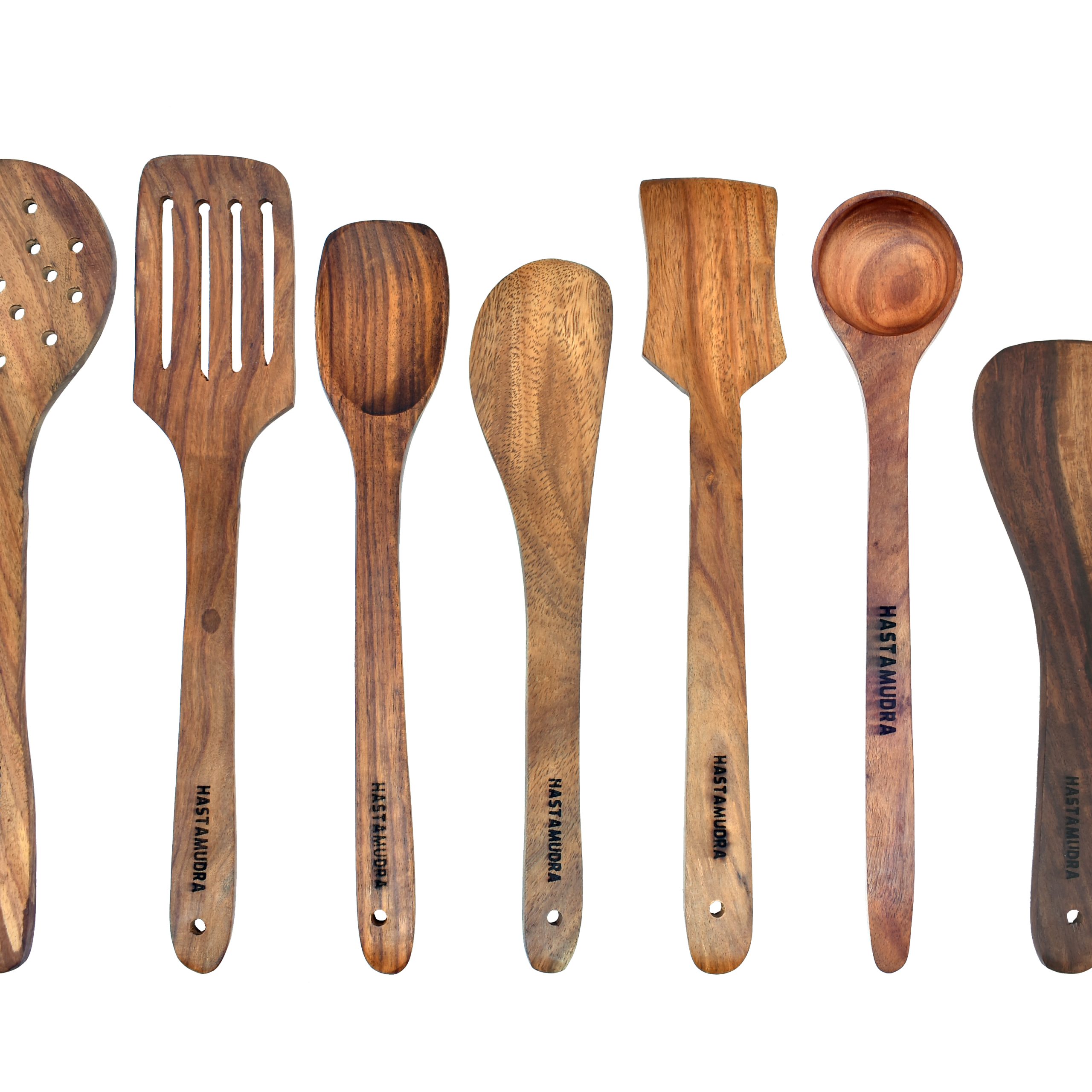 Transform your kitchen with Hastamudraās 7-Piece Natural Sheesham Wooden Spoon Set, crafted from 100% premium, eco-friendly Sheesham wood. This complete kitchen set includes nonstick, durable, and crack-resistant utensils for all your cooking needsāperfect for making chapati, dosa, rice, dal, and more.