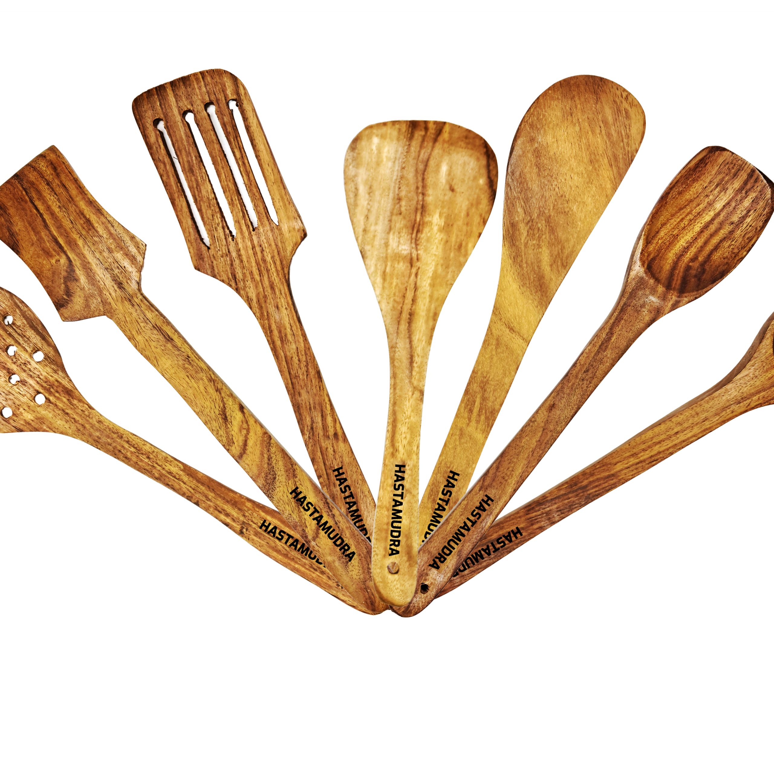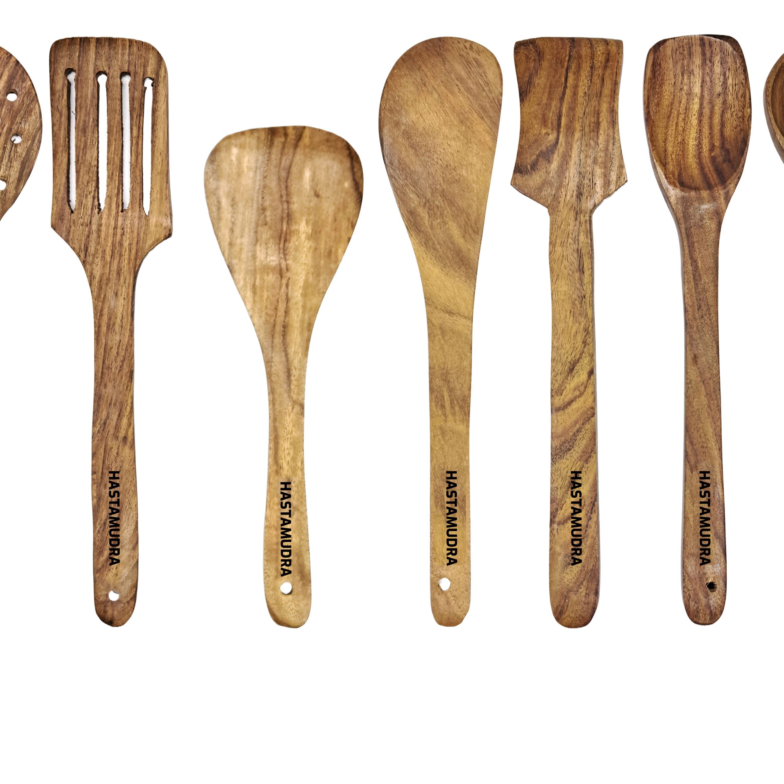 8 Piece Wooden Cooking & Serving Spoon Set – Includes Barrel – Nonstick and Perfect for Chapati, Dosa, Roti, Rice, Dal – No Added Color or Polish